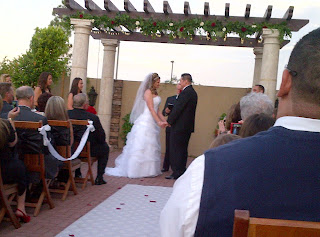 This is the first wedding for both of them (no kids either) and they are both in their late 30's. We have heard about the wedding plans for about 9 months now. I love the updates from them both--1) it's always amusing to hear crazy family stories as long as they are not your own family and 2) the two of them are so excited to finally have found each other that it rubs off on you. Well, it was beautiful! (Gary is standing behind Eddie in this picture)